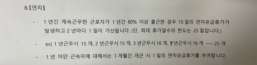위 내용은 근로계약서 연차 내용 입니다~!