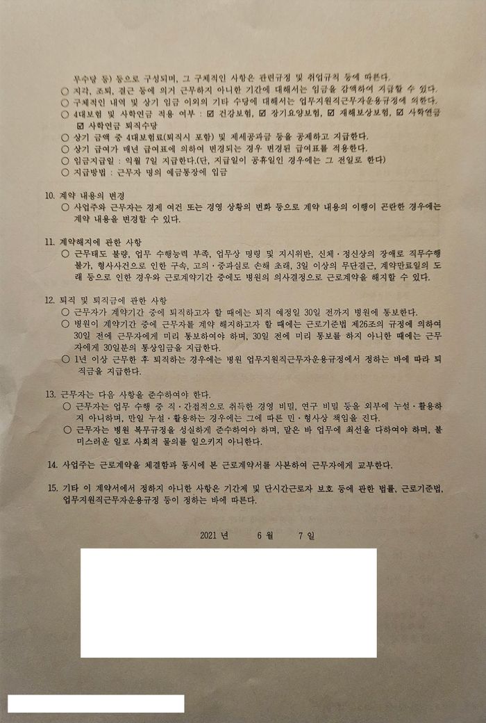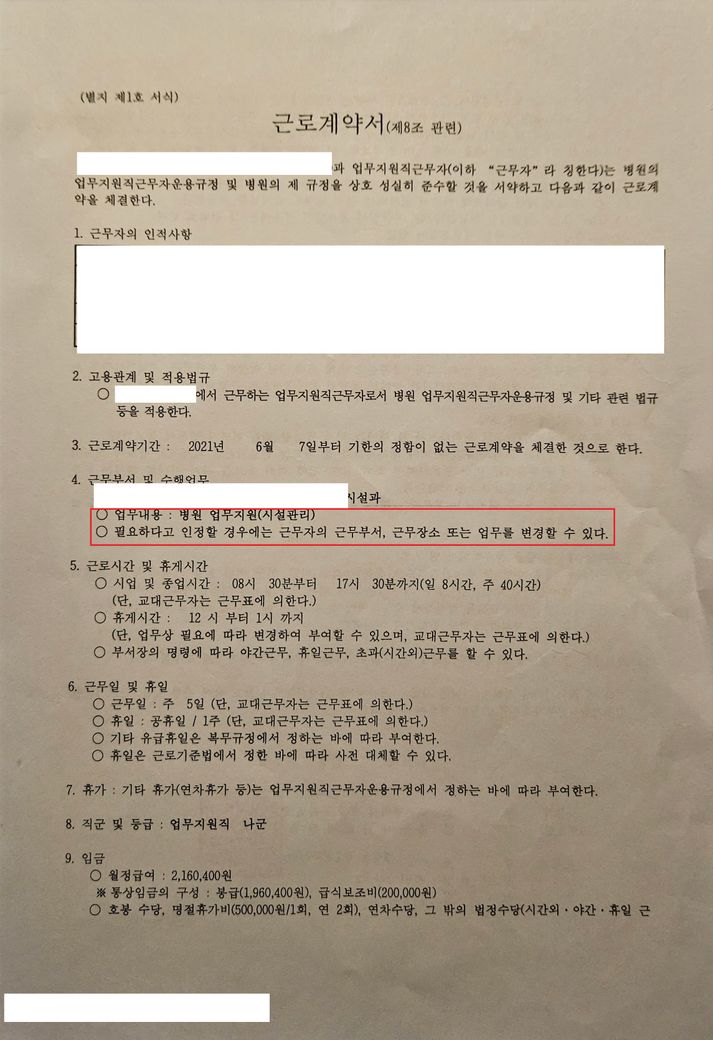 노조에서 들은 답변으로는 근로계약서에 빨간색으로 체크한 부분