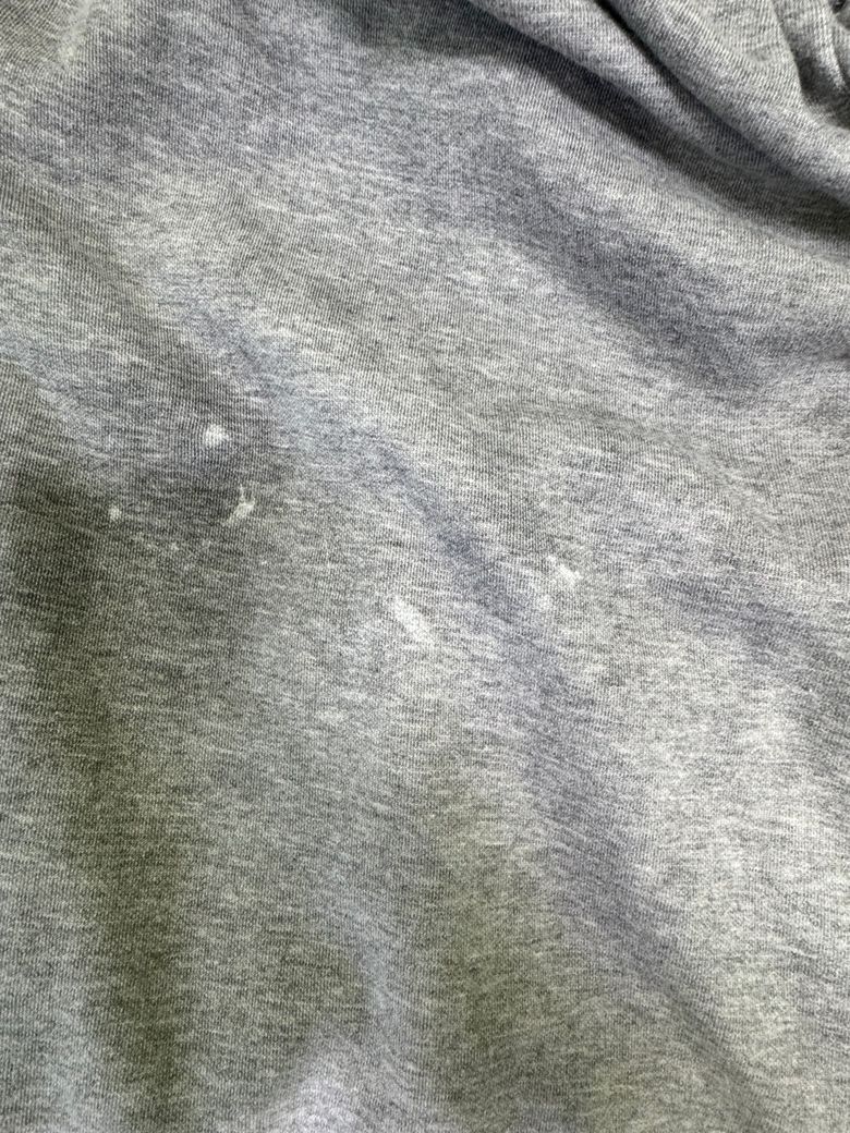 세탁하고 보니까 바지 쪽에 사진처럼 흰색으로 색이 변질됐어요 물로 문질러도 안없어지는데 이거 해결방법 없을까요?? 그냥 버려야하나요 ㅠㅠ