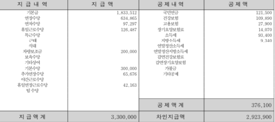 급여명세서에 항목별 금액 뿐만 아니라 계산방법이 추가되어야 합니다.