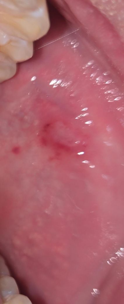 입안에 언제생긴지모르겠는데 통증은없는데 우연히 혀도 핥타가 피맛나서 발견했는데 구강암아니겠죠? -> 네 악성병소 양상은 아닙니다 오라메디 연고 발라주세요