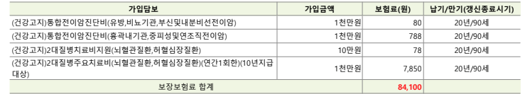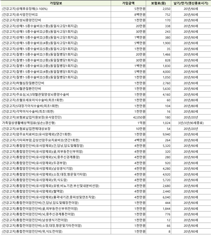 항목 자체는 나쁘지 않지만, 보험료는 다소 높네요.