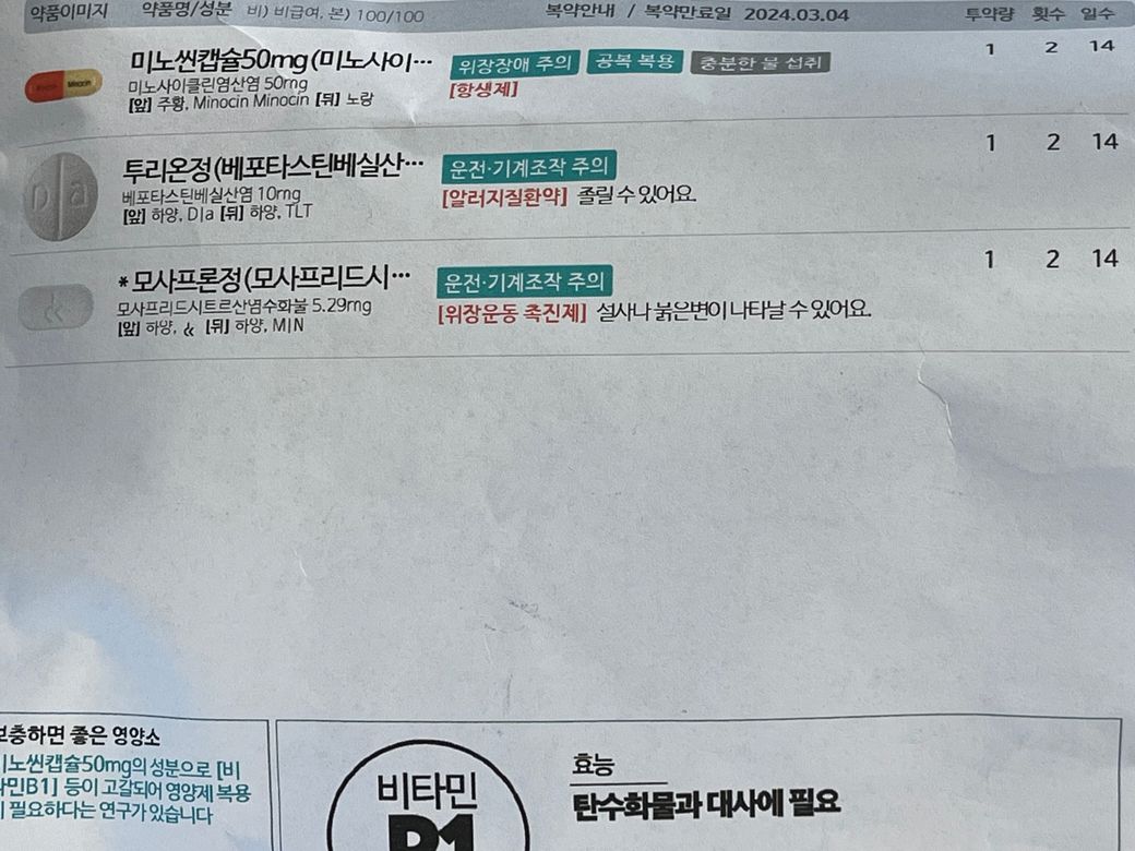 미노씬, 독시 등 테트라사이클린 계열 항생제 복용 관련 질문드립니다.