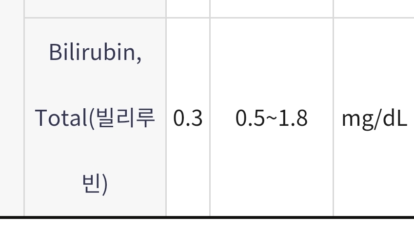 딱히 안 좋다고 볼 정도의 수치가 아닙니다. 빌리루빈은 특히 수치가 높을 때에 문제가 되는 종류의 수치이기 때문에 크게 걱정하실 필요는 없어 보입니다.