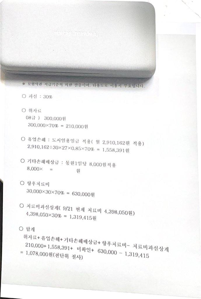 다만, 여기서 분쟁은 향후치료비에 대한 부분으로 님의 몸상태에서 대해 점검해 보시고, 해당 향후치료비가 타당한지만 검토하시면 됩니다.