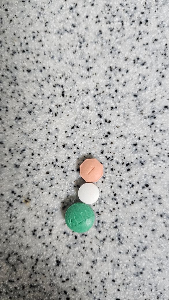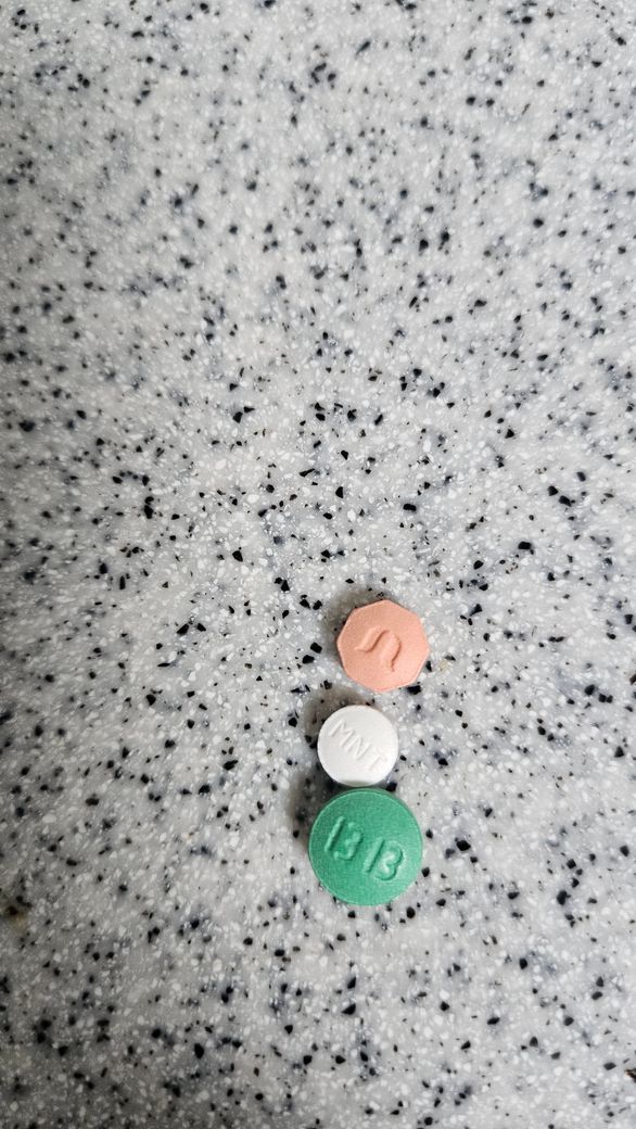 하얀색 약은 현대미녹시딜정, 초록색 약은 빙빙정, 분홍색 팔각형 약은 모모페시아정1mg 입니다