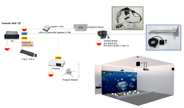 저희 인터렉티브 미디어 컨텐츠를 구동하기 위한 하드웨어는 첨부한 이미지와 같습니다.