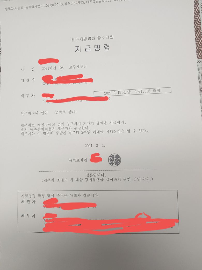 지급명령정본 결정후 어디서 어떻게 무엇을 해야하는지 궁금합니다.
