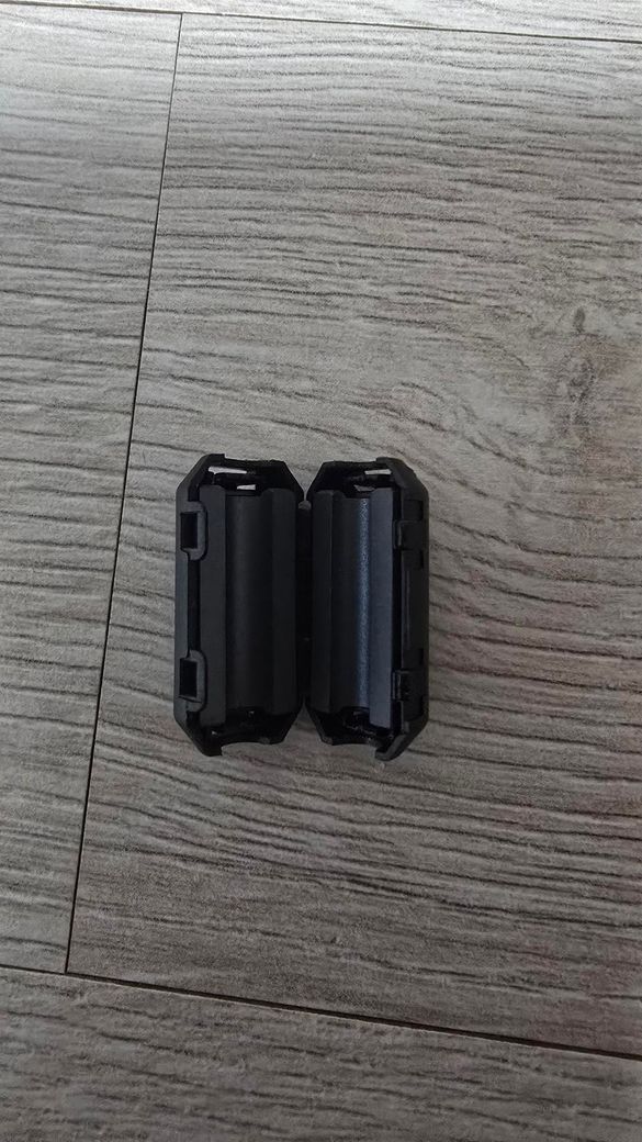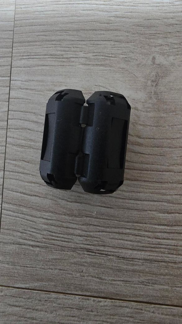 페라이트 코어같네요. 보통 전선에 감겨있고 고주파 전자기 노이즈를 흡수 및 제거하는 필터입니다. 전원선, 오디오, 데이터 케이블에 주로 사용됩니다