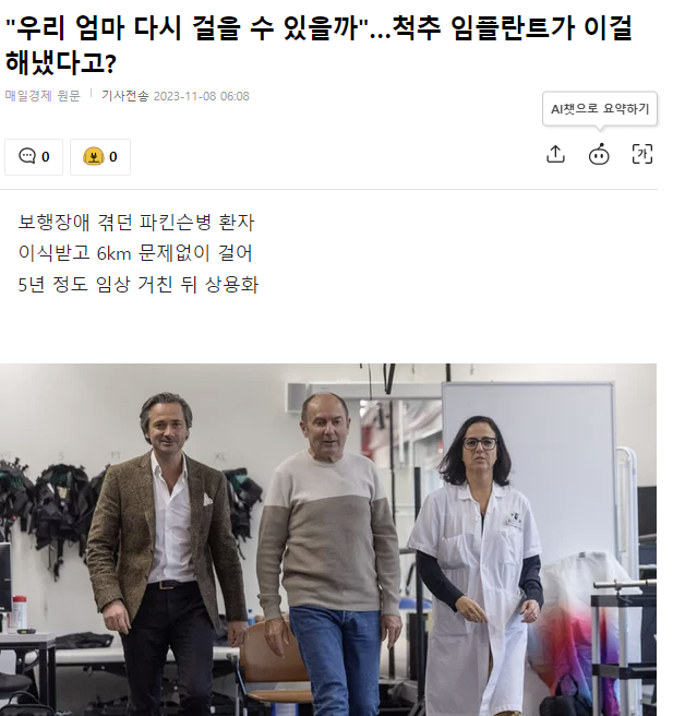 https://news.nate.com/view/20231108n02217#:~:text=%ED%8C%8C%ED%82%A8%EC%8A%A8%EB%B3%91%20%ED%99%98%EC%9E%90%EA%B0%80%20%EA%B2%AA%EB%8A%94%20%EB%B3%B4%ED%96%89%EC%9E%A5%EC%95%A0%EB%A5%BC%20%EC%84%B8%EA%B3%84%20%EC%B5%9C%EC%B4%88%EC%9D%98%20%EC%B2%99%EC%B6%94%20%EC%9E%84%ED%94%8C%EB%9E%80%ED%8A%B8%EB%A1%9C,%EB%8A%A5%EB%A0%A5%EC%9D%B4%20%ED%81%AC%EA%B2%8C%20%ED%96%A5%EC%83%81%EB%90%90%EB%8B%A4%EB%8A%94%20%EC%97%B0%EA%B5%AC%EA%B2%B0%EA%B3%BC%EB%A5%BC%20%EA%B5%AD%EC%A0%9C%ED%95%99%EC%88%A0%EC%A7%80%20%E2%80%98%EB%84%A4%EC%9D%B4%EC%B2%98%20%EB%A9%94%EB%94%94%EC%8B%A0%E2%80%99%EC%97%90%20%EB%B0%9C%ED%91%9C%ED%96%88%EB%8B%A4.