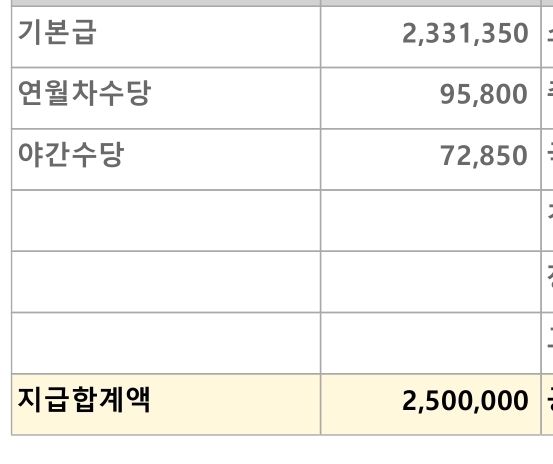 1. 사진 기준으로 퇴직금과 연차수당이 얼마인지 궁금합니다.