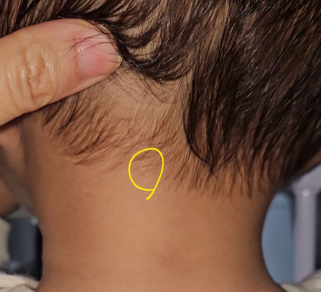 목뒤에 긁은상처인지, 커트하면서 바리깡이 지나갔던자리인지 사진처럼 보이는데요!