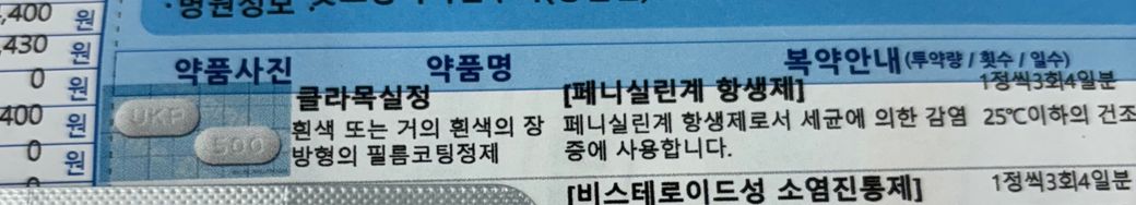 전에 처방받으셨던 클라목실정을 드셔도 동일한 증상이므로 도움이 될 것으로 봅니다.