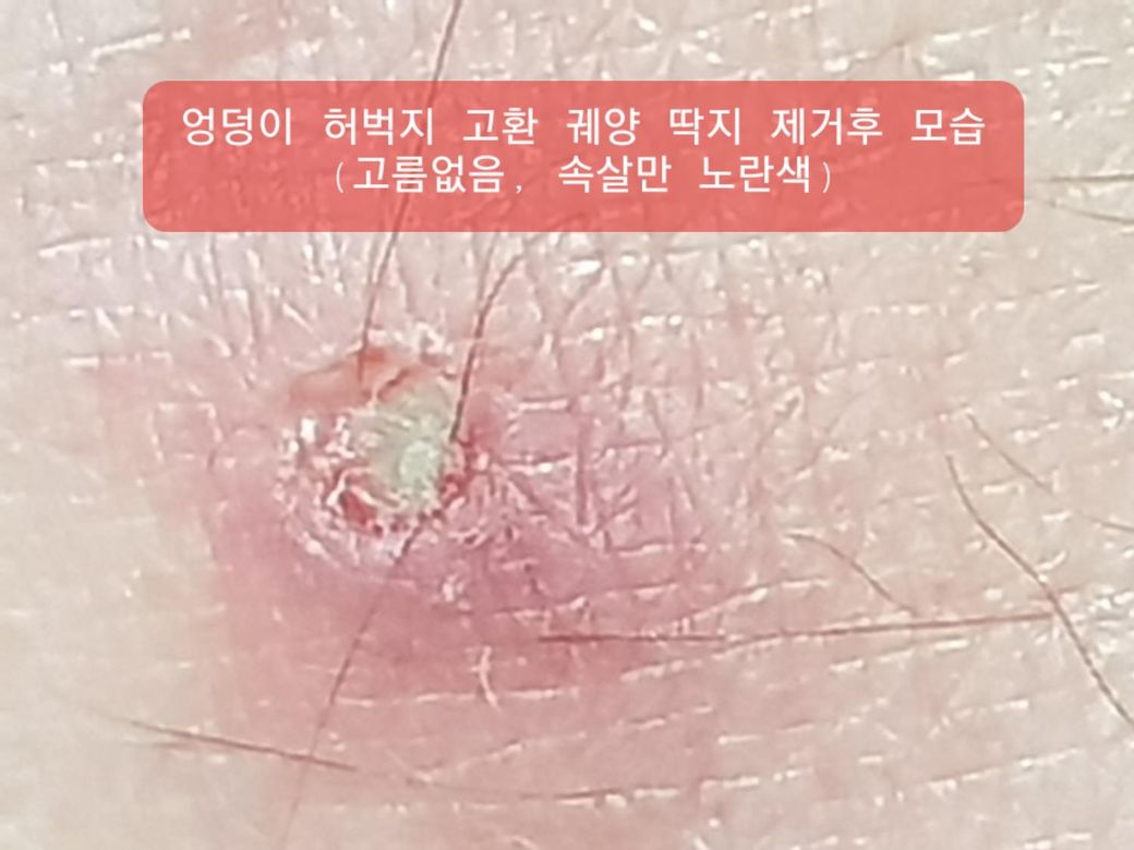 였습니다. 제거하면 고름은 안나오고 속살이 노랗게 변해있었구요. 왼쪽 고환은 한 3달전부터 가려웠고 작은 멍울이 하나 있었는데 최근 긁다가 피가 나고 나서부터 위와같은 딱지가 생겼습니다. 전부 처음에는 살만 조금 빨갛게 올라왔으나 가려워서 제가 긁고나서 위와같은 딱지가 생겼습니다.