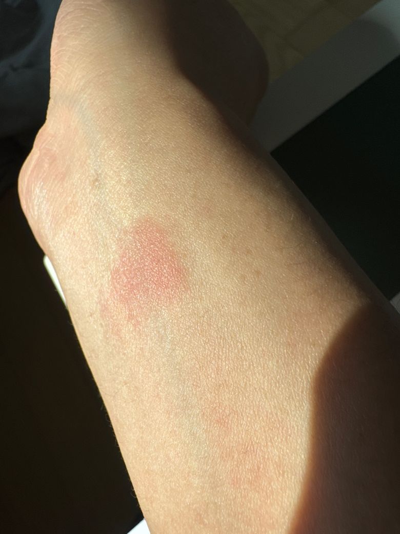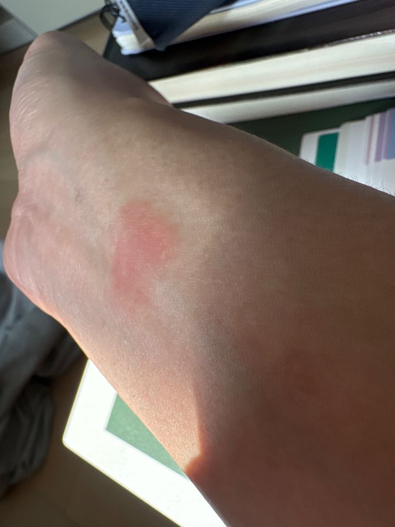 가능한 감별로는 접촉성 피부염(알코올, 마스크, 화장품, 세정제 등 자극), 마찰 또는 압박에 의한 단순 홍반, 초기 곰팡이 감염(체부백선) 초기 병변 등이 있습니다. 다만 곰팡이 감염이라면 시간이 지나면서 경계가 더 뚜렷해지고 가장자리가 약간 융기되며 중심부가 옅어지는 양상으로 변하는 경우가 많습니다.