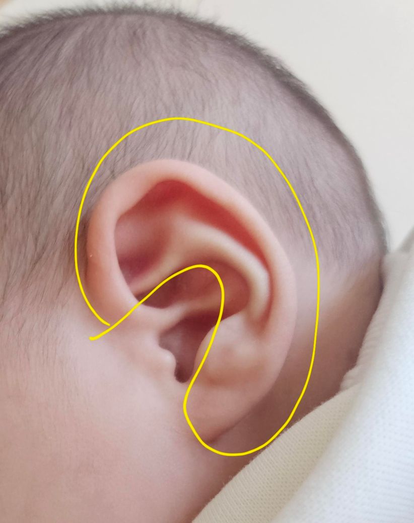 영유아검진때 아이들은 뼈가 연하다고 들었는데 사진에 노랑 동그라미 부분들 양측귀보면 연햔뼈같이 만져지는건 연골맞지요??