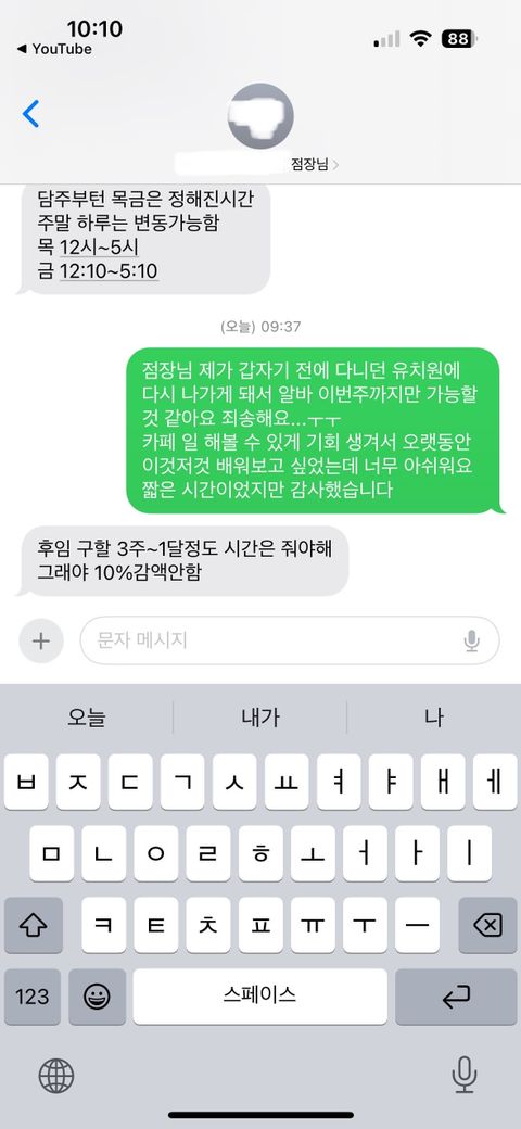 사정이 있어 이번주까지만 근무할 수 있을 것 같다 연락했더니 ‘후임 구할 3주~한달 시간은 줘야한다 그래야 10%감액 안 한다’는 답변이 돌아왔는데 이게 협박인가요 정당한 요구인가요?