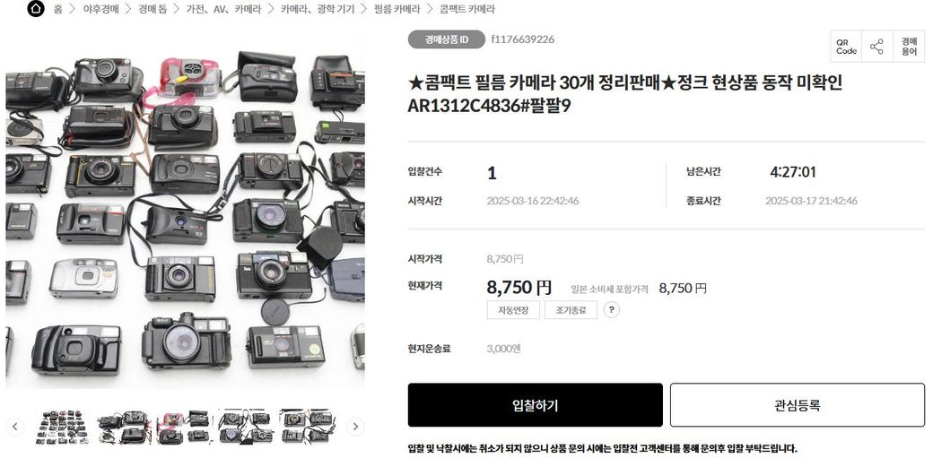 안녕하세요, 중고(정크품) 일부 기기 불량이거나, 작동하지 않는 중고 카메라를 일본에서