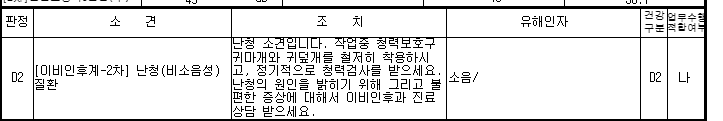 난청으로 한 쪽 귀의 청력 손실치가 40 데시벨 이상이어야 합니다.