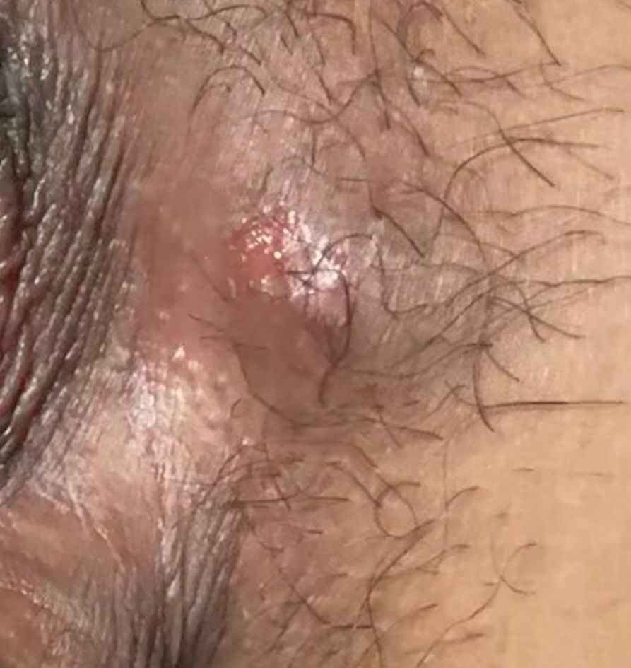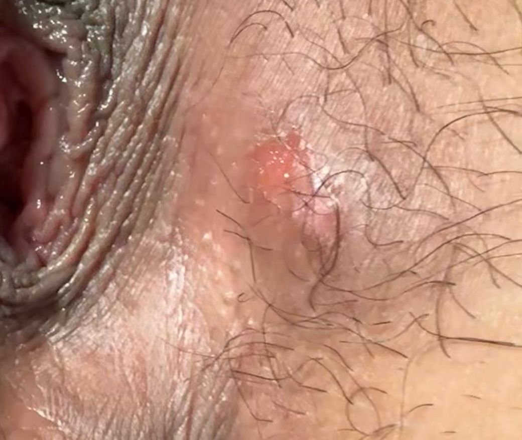위치는 질 오른쪽, 항문 근처입니다. 무언가 딱딱한 게 만져져서 여드름인 줄 알고 힘을 줘서 짠 상태입니다. 꼬집었을 때 안에 덩어리가 진 느낌이에요. 헤르페스 2형인지, 아닌 지 여쭤봅니다.