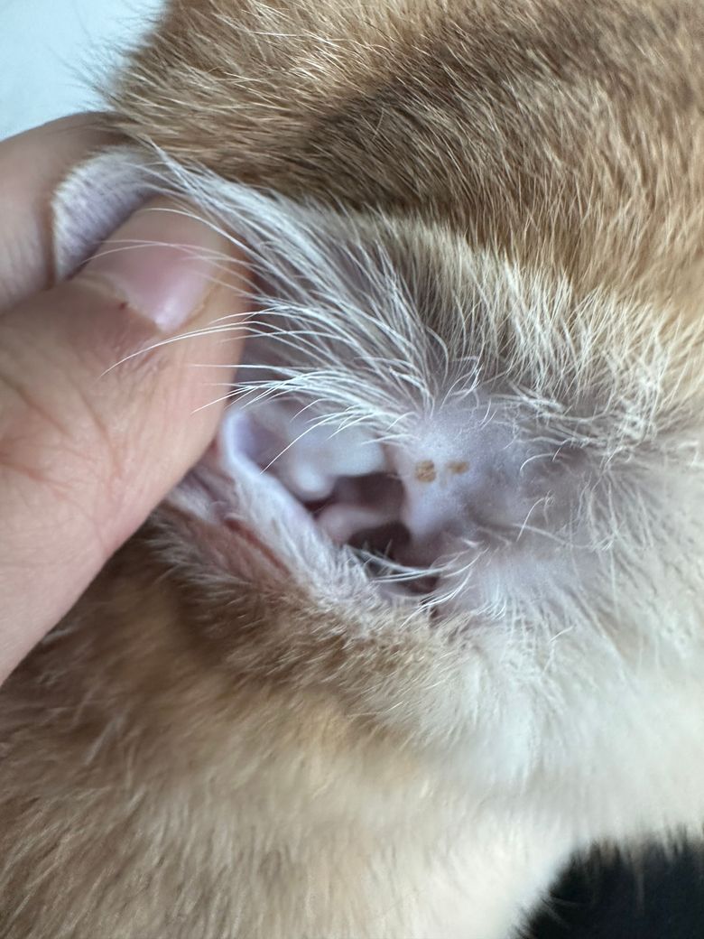 고양이 아이 알러지가있어요 그래서 가끔긁어요 몇주전부터 계속있던건데 이건 뭘까요? 귀지 피지??아니면 긁어서 생긴 딱지인가요?떼어내도 될까요?