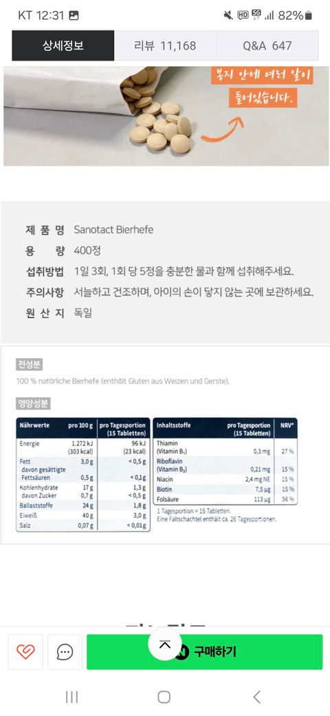 해당 제품 섭취하려고 하는데 영양성분표에 정확한 맥주효모 함량이 안적혀있어서 여쭤봅니다!