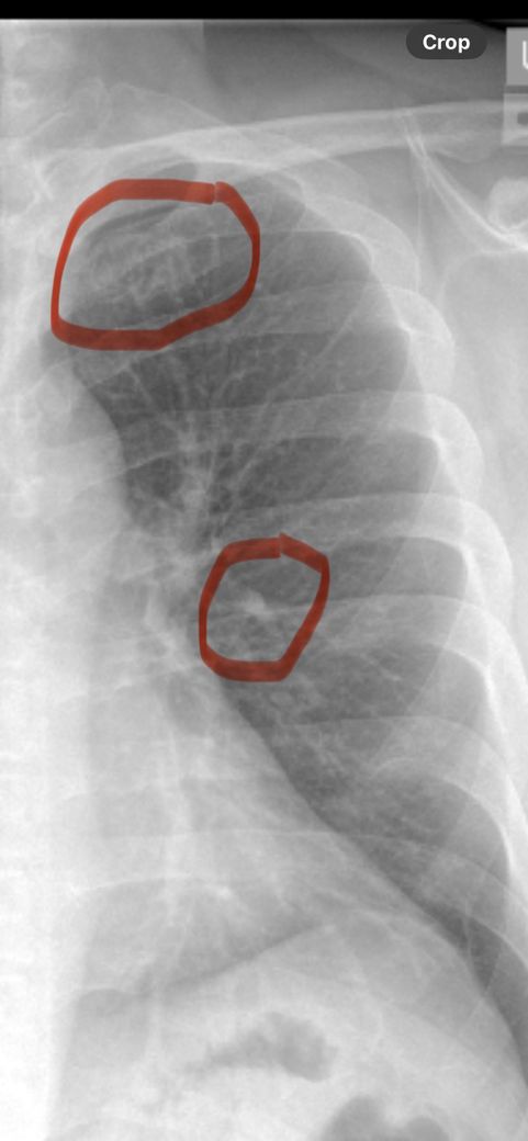 명치주변 그리고 위쪽으로 쥐는듯한 통증이 있어서 폐암이 무서워서 급한대로 urgent care에서 흉부 엑스레이 촬영 및 피검사를 했고 문제가 없다고 하는데.... 어전트케어에는 보통 수간호사가 의사 역활을 해서 사진에 이상이 있는지 확인하 고 싶습니다. 오른쪽 위 쇄골쪽 동그란 형태? 그리고 중앙에 하얀색으로 점처럼 보이는게 괜찮은건가요?... ct 촬영을 하 려면 반년을 기다려해서 걱정입니다