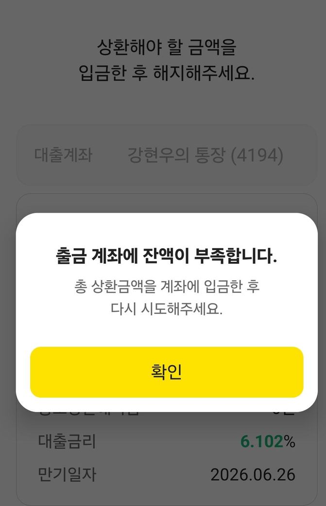 상환시또 다른 계좌로 돈을 붙이라고 나옵니다. 카카오 계좌는 하나 아닌가요? 왜 돈을 어디로 붙여야 할까요? 잔액이 없다고 나옵니다.