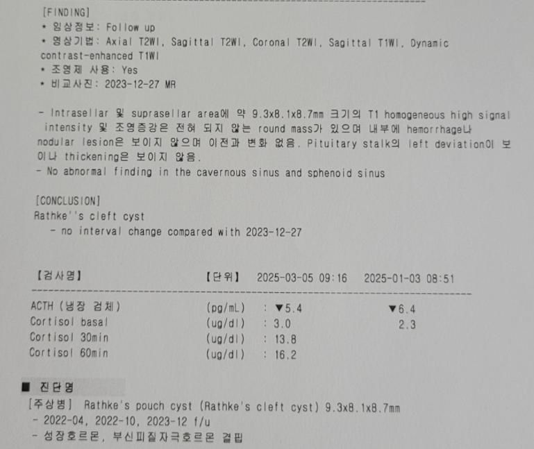 의사 선생님이 뇌하수체 선종때문에 호르몬 이상이 생긴거라고 하셨는데요