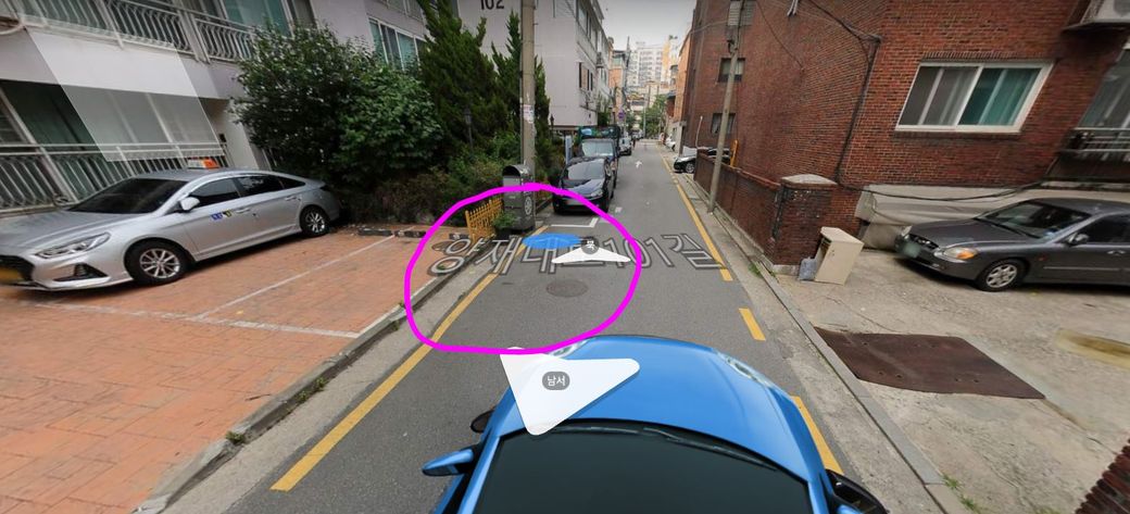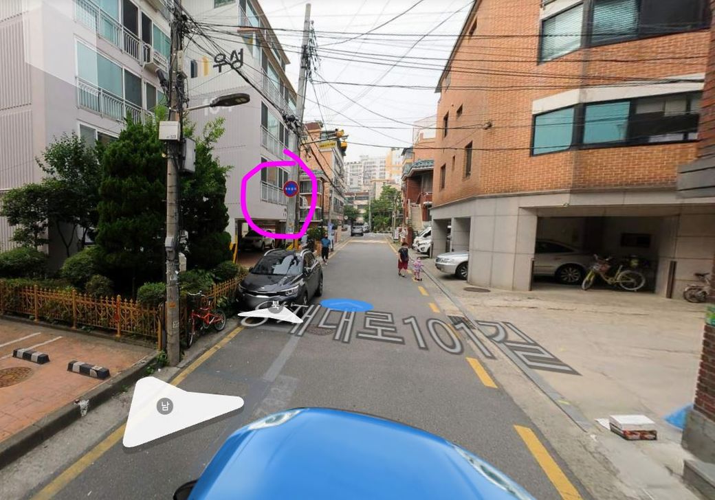 조금만 더 앞으로가면 표지판에 주차금지 라고 써져있습니다