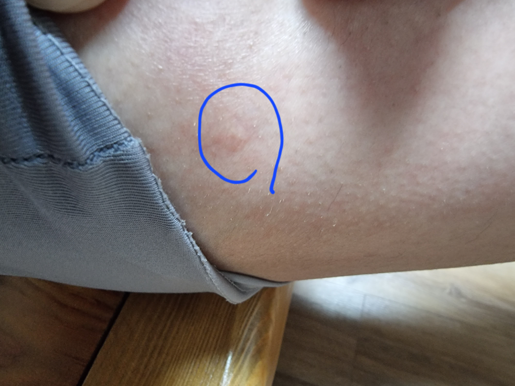 허벅지쪽 동그라미 친부분은 물린걸로 추정되는 부분 입니다.바로 알콜솜으로 소독했구요.