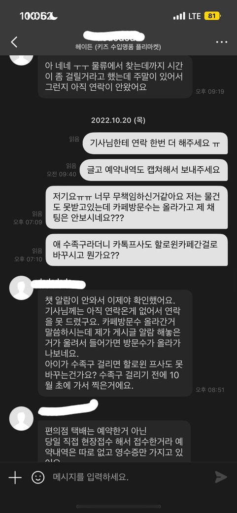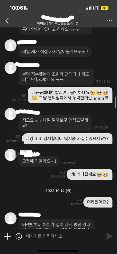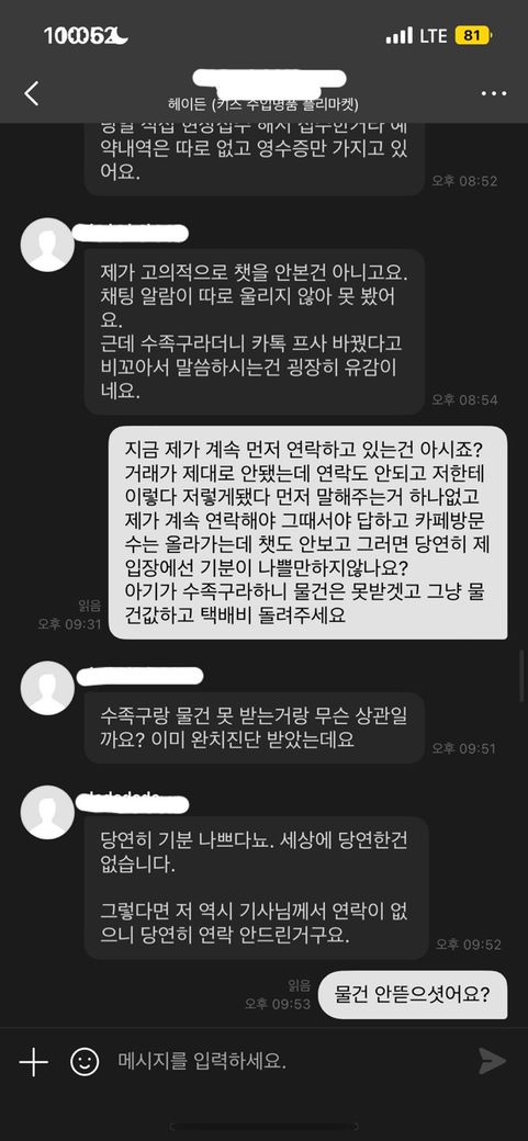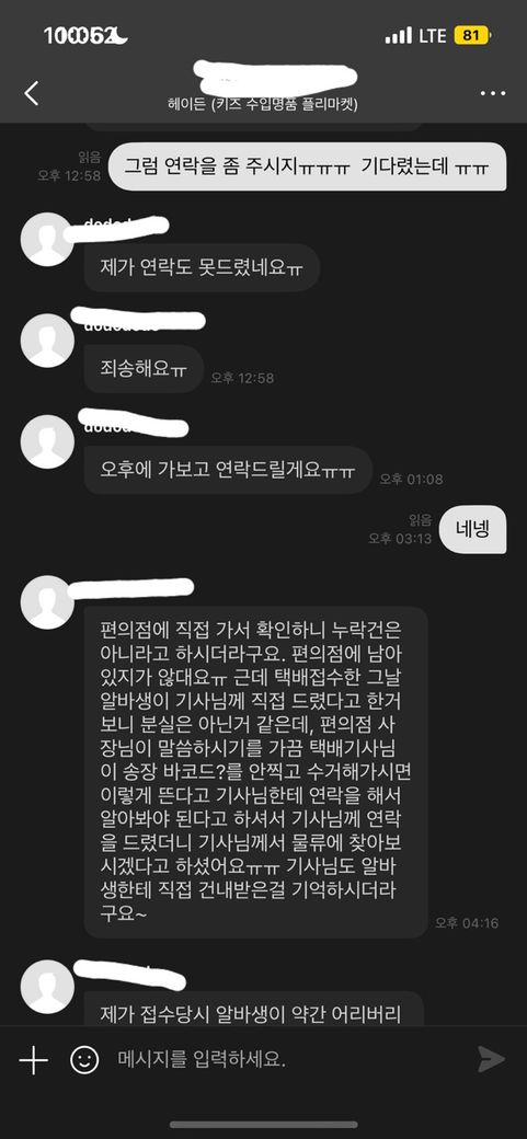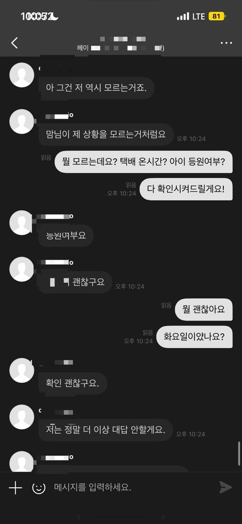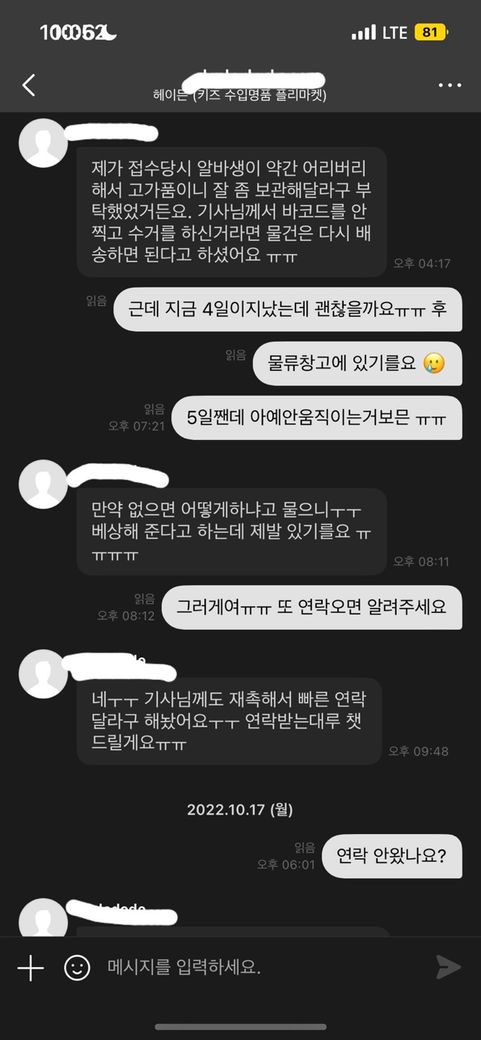 일주일째 제가 먼저 연락해야 답이오고 보상건에 대해 제대로 찾아줄생각이 없어보입니다.