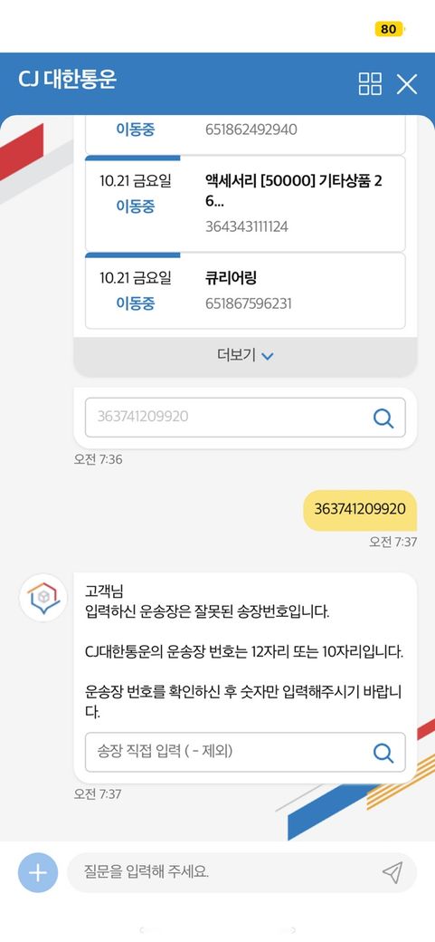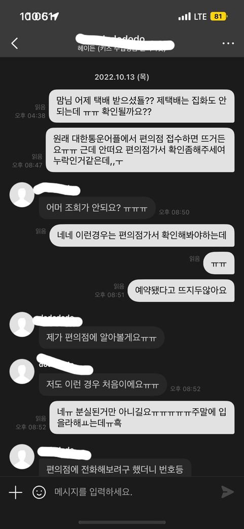 12일에 제가 보낸 택배는 도착, 상대방이 보낸 택배는 현재까지 운송장 번호 조회가 되지않습니다