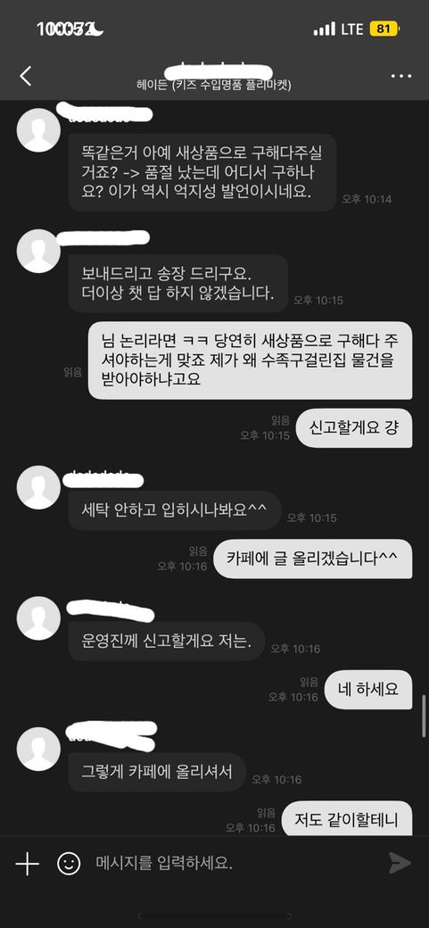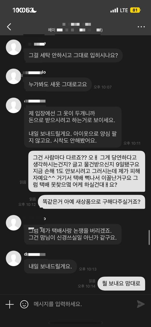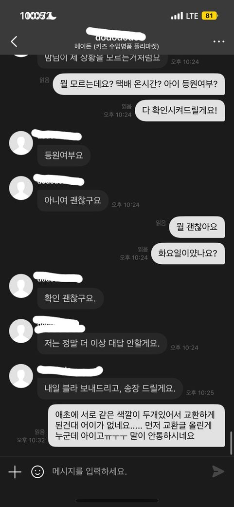 10/6 서로 새상품 교환하기로 하였고 연휴가있어 11일날 같이 택배보냈고