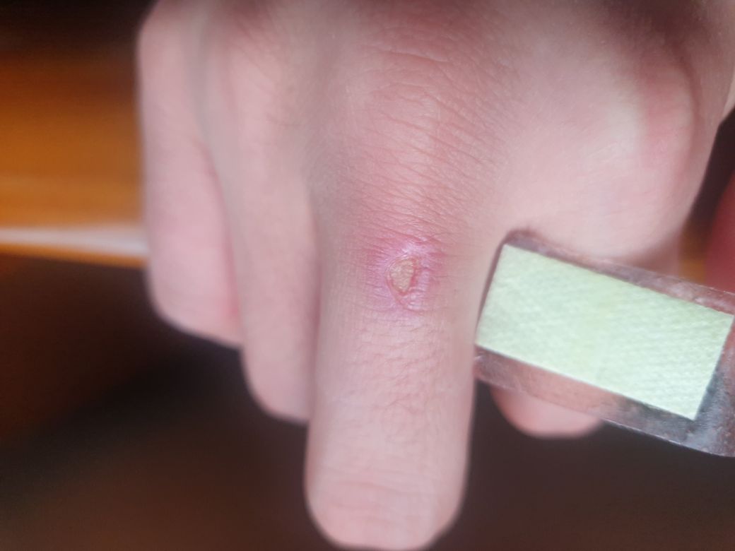 최근에 서랍에 긁혀 상처가 났는데 노란색이 생겼어요. 에탄올로 소독하고 후시딘 바르는데도 이러내요.