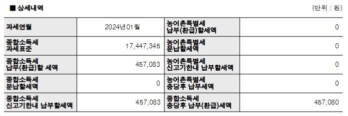 마이너스가 아닌 플러스 금액은 납부하는 세금입니다.