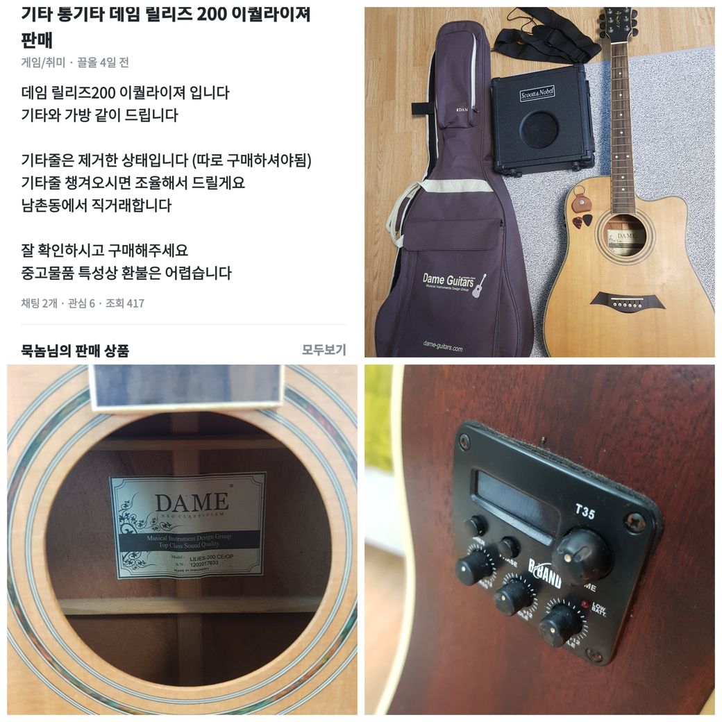 제가 당근마켓에 올려두었던 통기타 판매글에