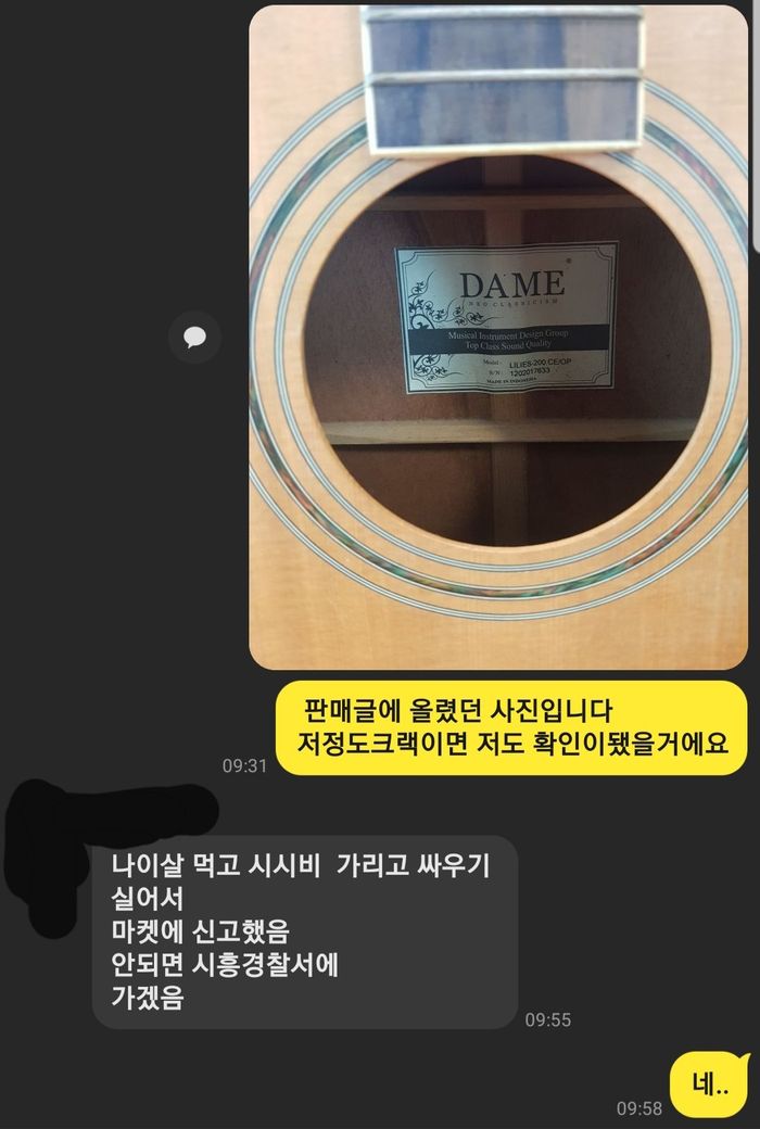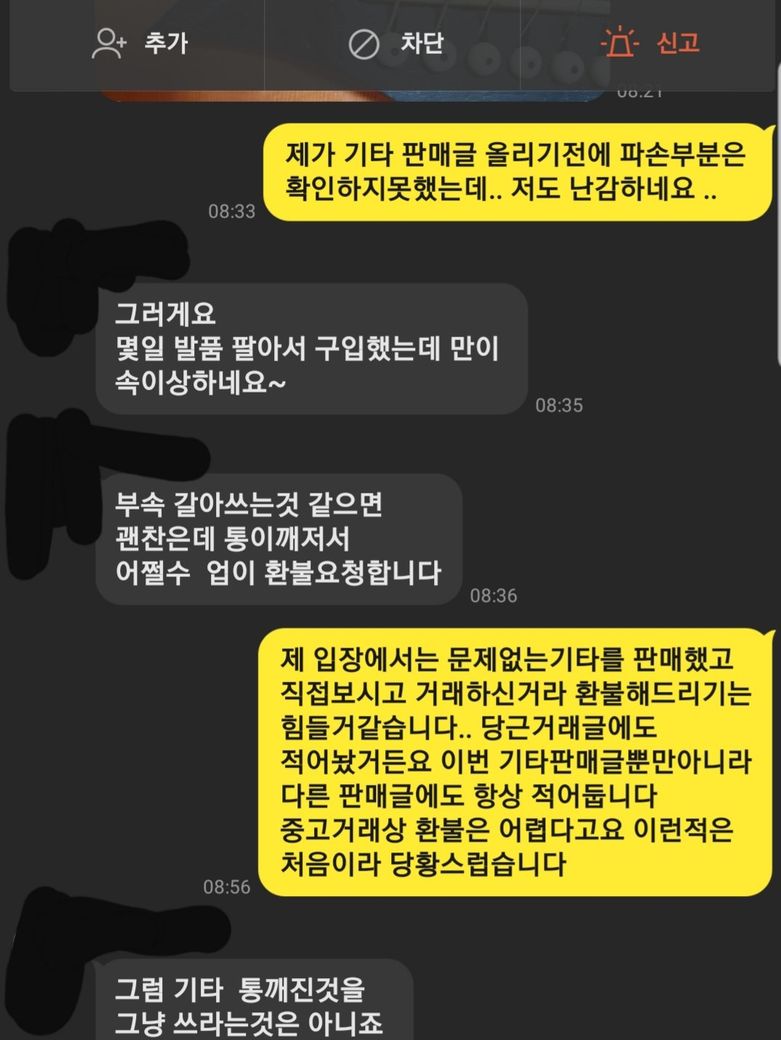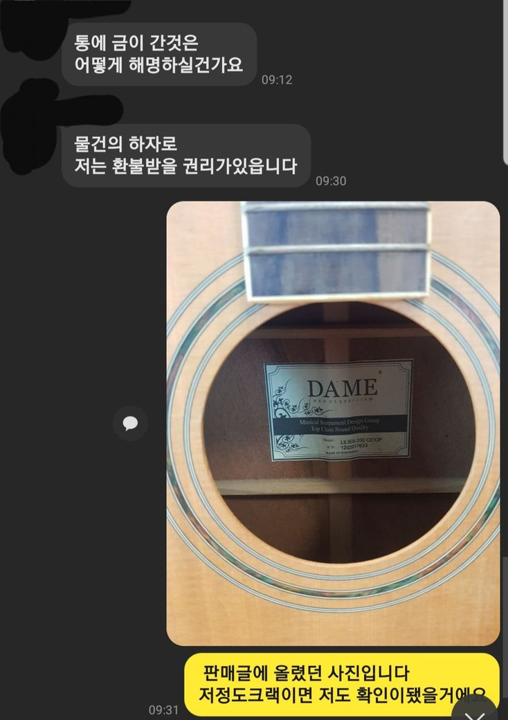 제가 판매할때는 멀쩡한 기타였는데 가져가셔서 파손이라고하시니 당황스럽습니다 . 그리고 어떠한 대처를 해야하는지 조언부탁드려요