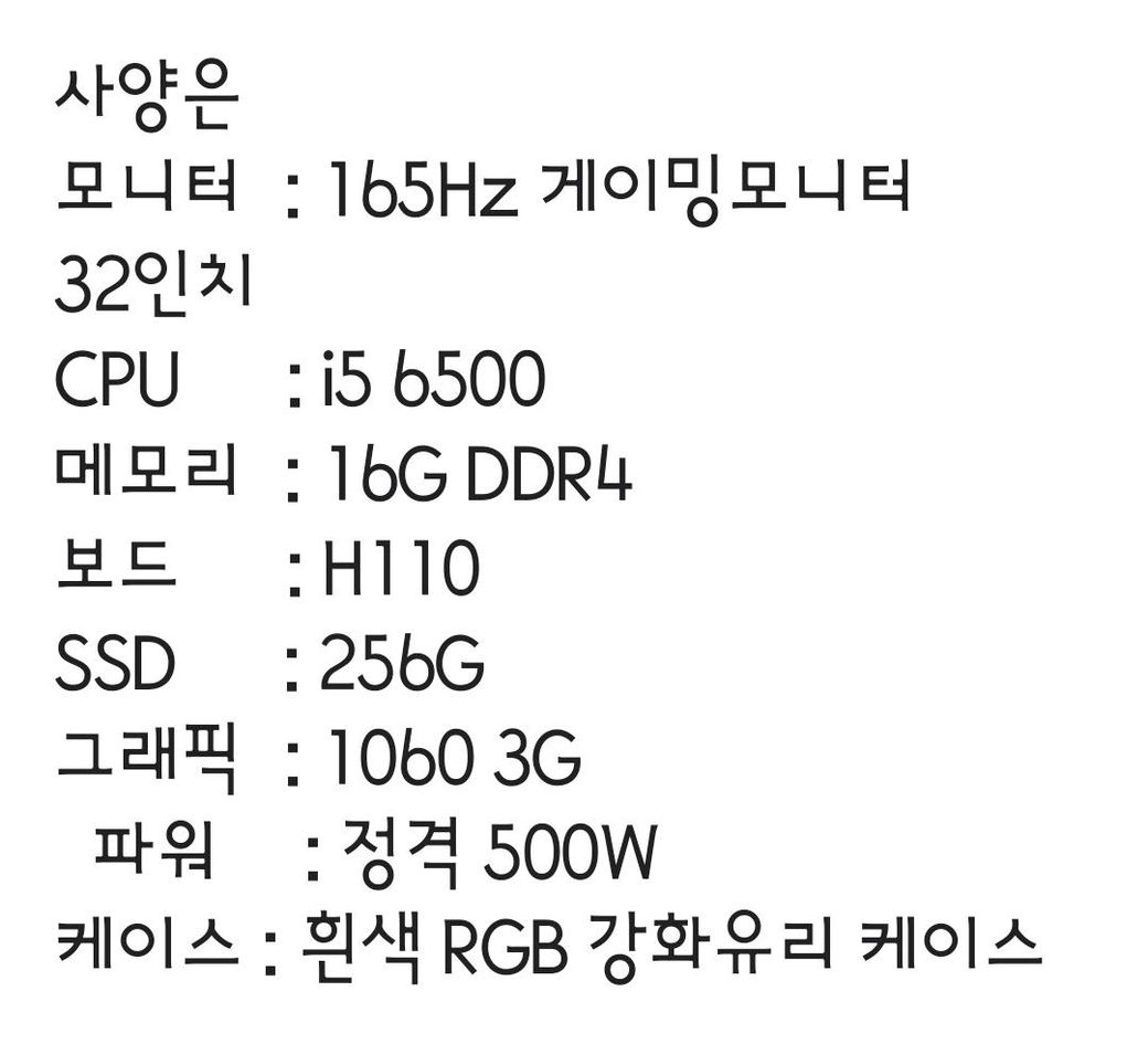 사양은 이렇습니다 게임은 주로배틀그라운드를 하려고 합니다 렉없이 사용할수있을까요? 중고거래할껀데 가격은530000정도입니다 적당한가요?