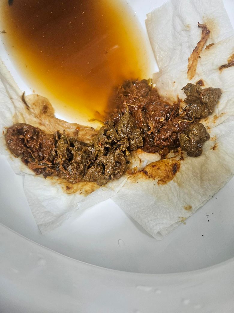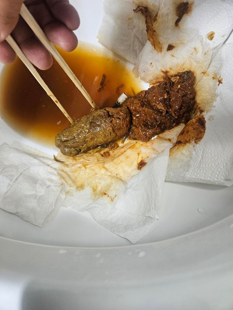 제변의 상태에 대해 회색변이라는건지 카키색이 맞는건지