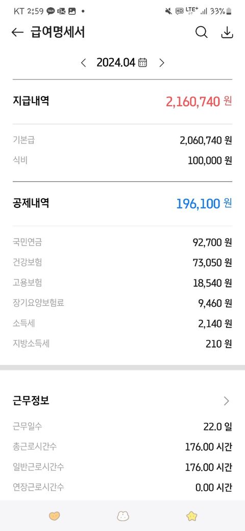 게다가 기본급이 저 최저시급 기준인 날보다 더 적게 받는 경우도 있는데 그건 괜찮나요? 결국 월급은... 식대랑 야근 수당 등이 포함돼서 최저 시급인 날보다 더 받는 것 같기는 하는데...