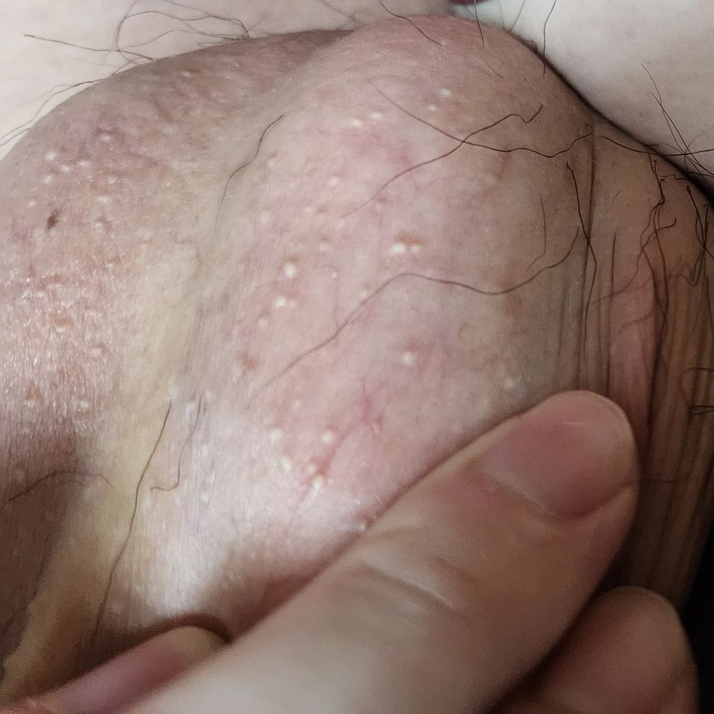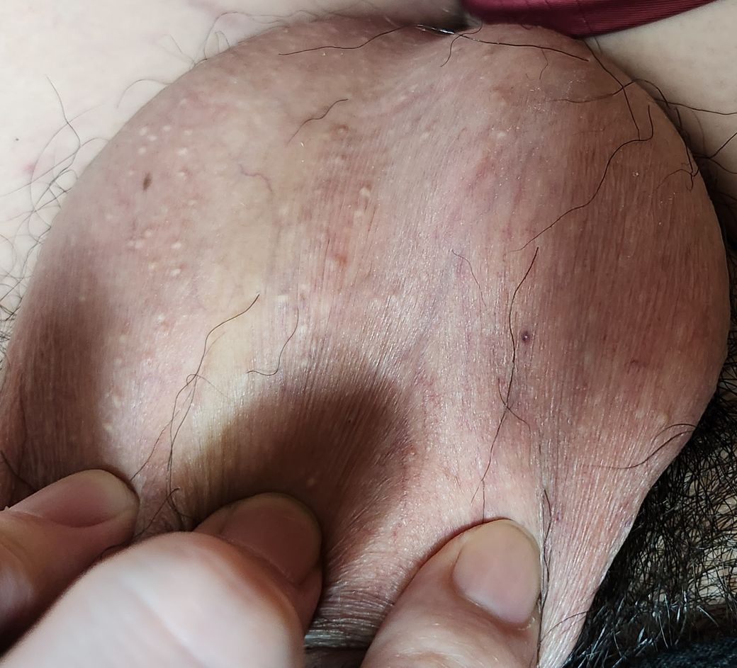 음낭에 좁쌀 여드름같은 것들이 있습니다 어릴 때부터 모공 주변에 오돌토돌하게 있었긴하지만 올 해 들어 여드름도 엄청 나기 시작하기도 했고, 저렇게 흉하게 있는 줄 몰랐는데요. 피지낭종같은 건가요? 곤지름같은 건 아니겠죠? 근 2년 정도 관계가 없었습니다. 검게 된 부분은 착색이 된건가요? 노랗게 가장 큰 게 있길레 란셋으로 찌른 후 압출하려 했는데 피만 나오고 짜지질 않더라구요 이게 무엇인지 알고싶습니다