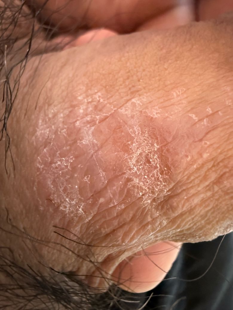 음경에 이렇게 각질이 생겼습니다 자위를 강하게 했는데 피부가 까져서 그런갈까요? 헤르페스가 이런 병변으로 나타나기도 하는지 궁금합니다