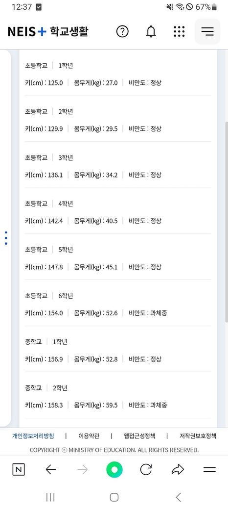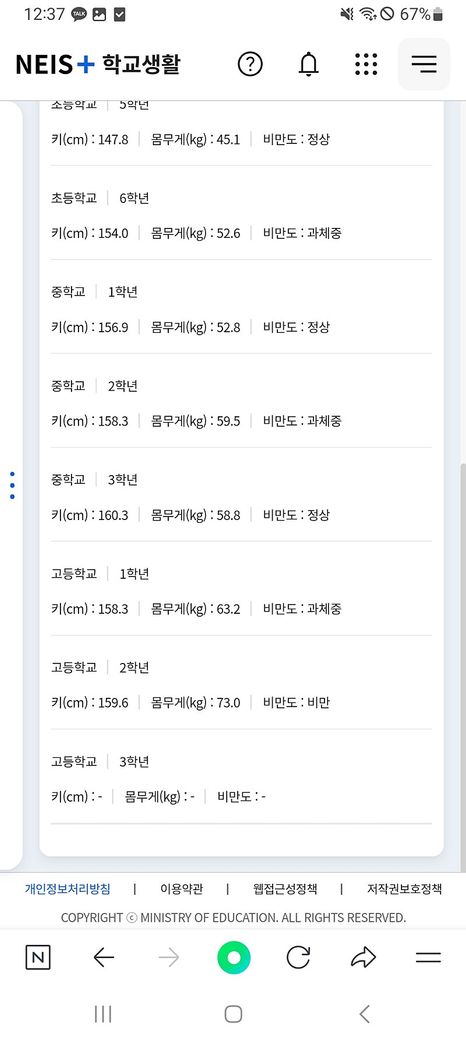 중3 --> 고1 : -2(?)(cm)