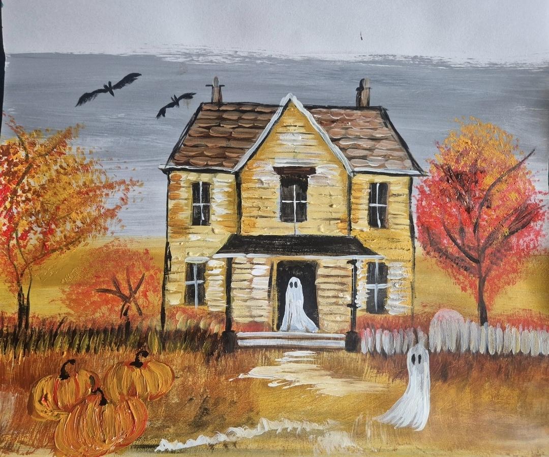 유화는 보통 잘 안하시는데 시도가 좋습니다. 전반적으로 전하고자 하는 느낌은 대략적으로 느낄수가 있습니다. 다만 디테일에 대해서 조금 조언을 드리자면 하늘과 집, 그리로 유령, 풀 등 전체적인 색감이 어울리지가 않습니다. 일부러 강조를 위한 것이 아니라면 색 조합에 대한 부분을 다시 고민하시면 좋을것 같고 항목들의 배치 및 위치가 다소 부자연 스럽습니다. 그림 자체가 한쪽으로 쏠려 보이는 불안전감을 유발하고 있습니다. 이 정도만 감안하시면 더 좋은 그림이 될것 같습니다.