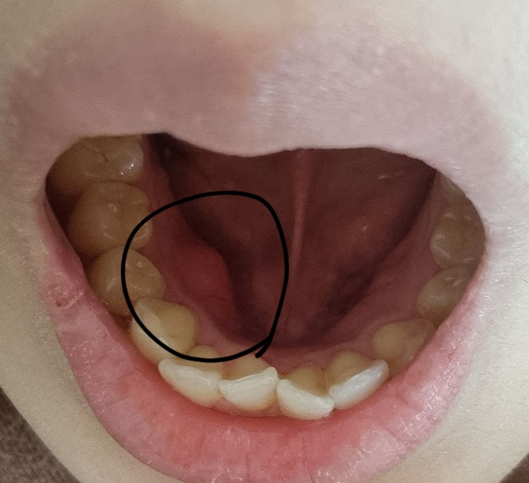 표시된 부분이 딱딱하구 누르면 살짝 아프고 이 부분에 입병이 자주 납니다. 병원에 가봐야할까요 아니면 그냥 제 뼈의 모양이 좀 특이한 걸까요?