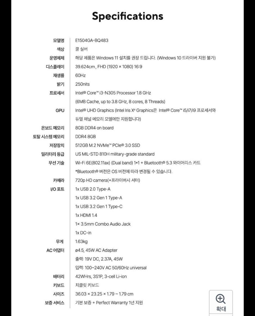 아니면 가격이 120만 원이 넘는 LG 그램 같은 것을 구매하면 1kg 미만으로 사용이 가능하긴 합니다. A/S에 대해서 잘 모르면 대기업을 사는 것을 추천 드립니다. 대부분 노트북 점검을 할 수 없는 사람들이 A/S도 할 수 없기 때문에 중소기업은 추천 안 합니다.