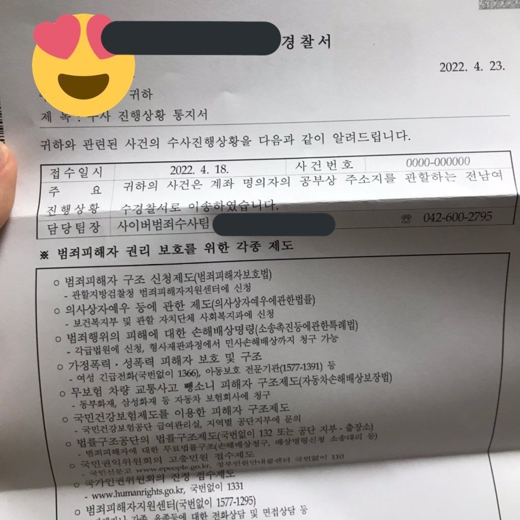 4월 15일에 번개장터에서 소액사기를 당한 후 4월 18일 고소장을 접수했고 4월 23일날 수사진행상황 통지서가 날라왔는데 그 뒤로 문자나 전화 연락이 오질 않네요 ㅠㅠ… 왜 그런 걸까요?? 직접 경찰서에 찾아가야할까요? 보통 다른 분들은 고소한 뒤 문자가 온다고 하시던데 저는 연락이 아예 없어요 ㅠㅠ