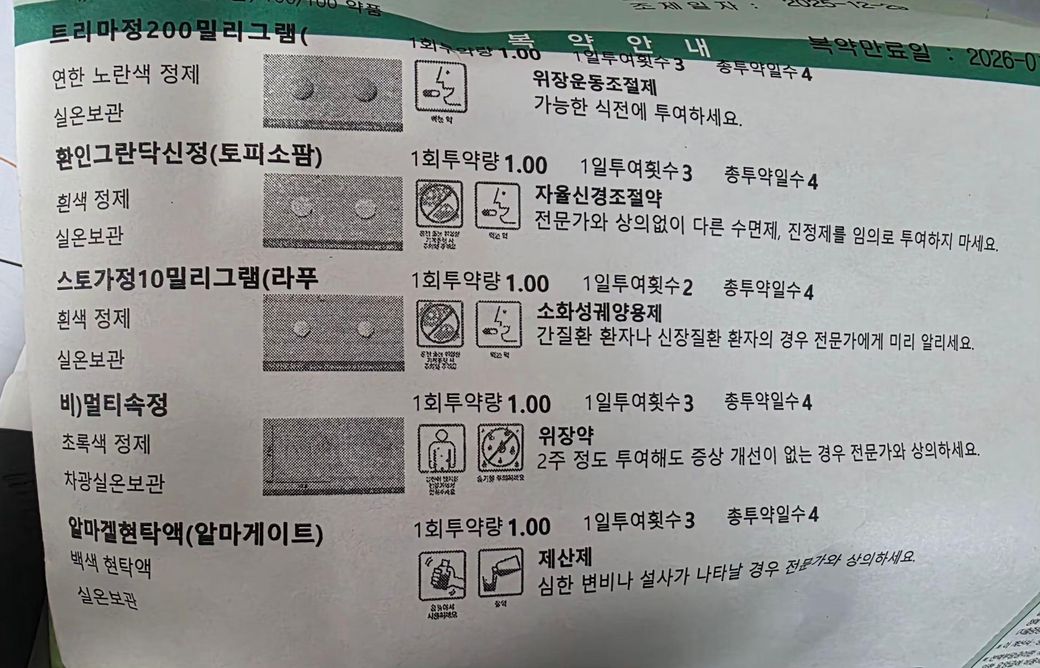 오늘 속이 안좋아 약을 처방받아 먹고있는데 아침을 거의 안먹는 사람이라