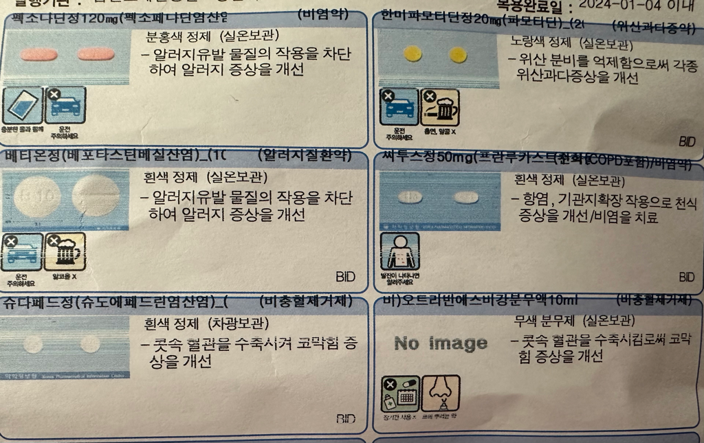 문의주신 사진의 알레르기 비염약과 진통제는 서로 성분이 중복되거나 상호작용이 있지 않기에 함께 복용을 하셔도 됩니다.